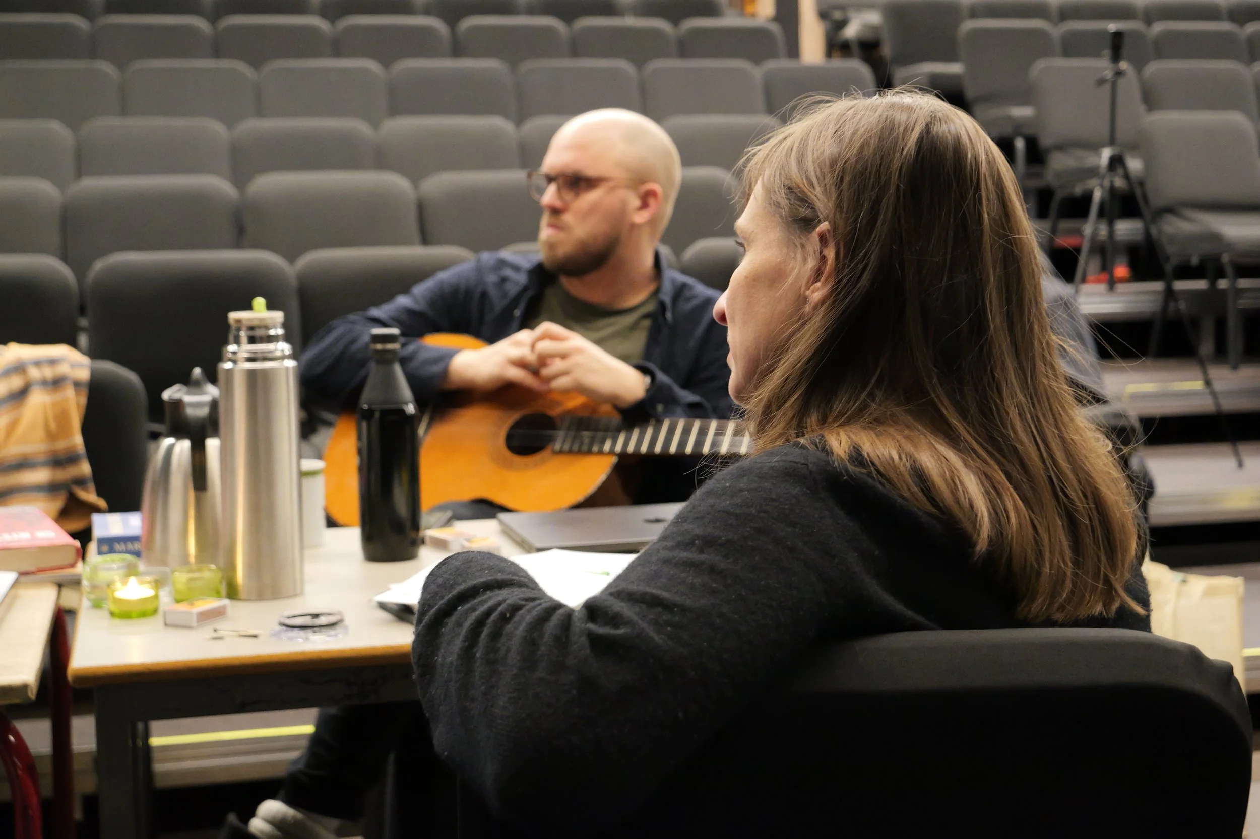 På Samvirket-scena utforskar gruppa korleis tekst, lyd, scenografi og handling kan eksistere som likeverdige lag i ei form for scenisk ritualitet – der rommet blir ein aktiv medspelar i komposisjonen.